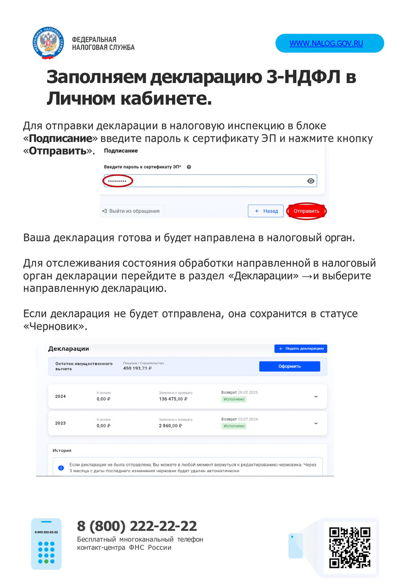 Заполняем декларацию 3-НДФЛ в Личном кабинете.